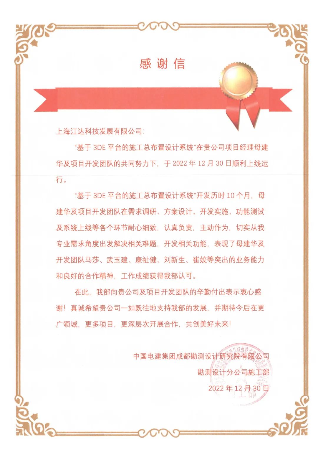 附:中國(guó)電建成都勘測(cè)設(shè)計(jì)研究院的表?yè)P(yáng)信