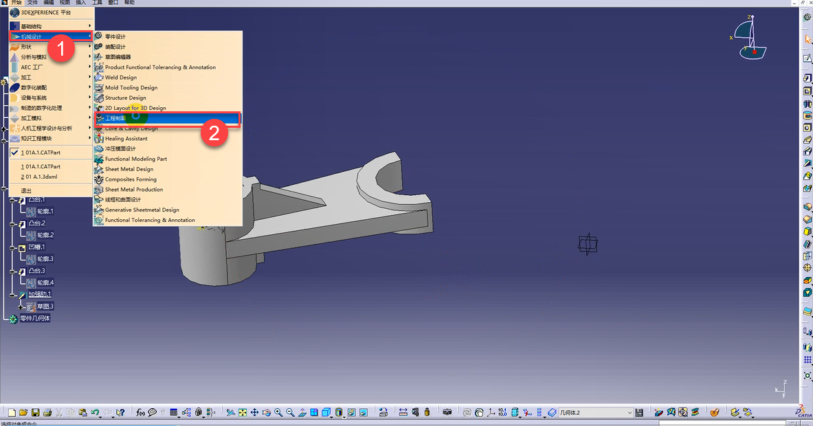 (1) 進(jìn)入工程制圖模塊: