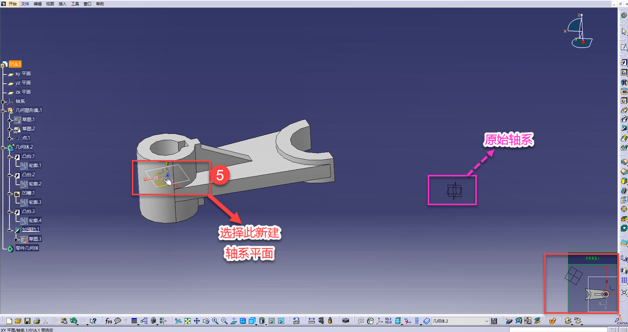 (2) 視圖投影時(shí)選擇新建軸系平面: