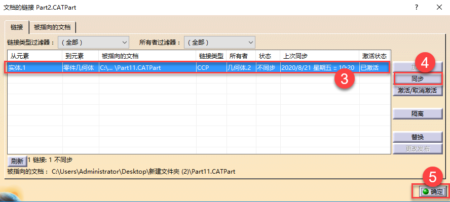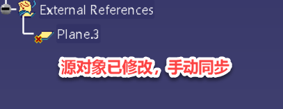 Q3:帶鏈接復(fù)制,且復(fù)制和被復(fù)制的對(duì)象不在同一個(gè)產(chǎn)品節(jié)點(diǎn)。同時(shí)打開這兩個(gè)對(duì)象,但源文件(被復(fù)制的對(duì)象)進(jìn)行更新后,帶鏈接的復(fù)制對(duì)象就斷開了鏈接,且無(wú)法進(jìn)行手動(dòng)更新,圖標(biāo)提示如下圖: