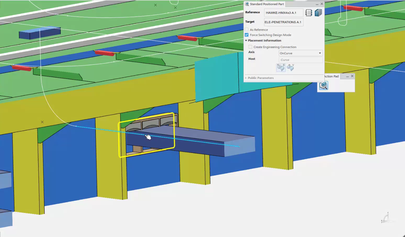 即需要在什么對(duì)象上進(jìn)行開孔??梢酝ㄟ^(guò)方便的在3D模型上點(diǎn)擊拾取皆可指定相關(guān)對(duì)象以及上下文對(duì)象。另外,也可以添加定義在開孔時(shí)需輔助參考的電氣貫穿件對(duì)象。