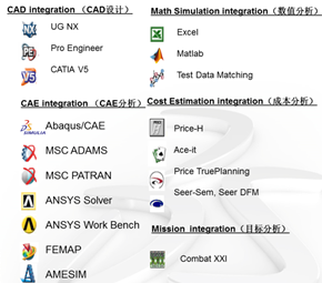 Isight以應(yīng)用組件的形式提供了針對大量第三方軟件的接口,可以輕易的將各種常用軟件串聯(lián)在Isight的優(yōu)化或試驗設(shè)計等流程中,從而實現(xiàn)各軟件間的數(shù)據(jù)流傳遞,完成多學(xué)科多領(lǐng)域聯(lián)合仿真和優(yōu)化流程。