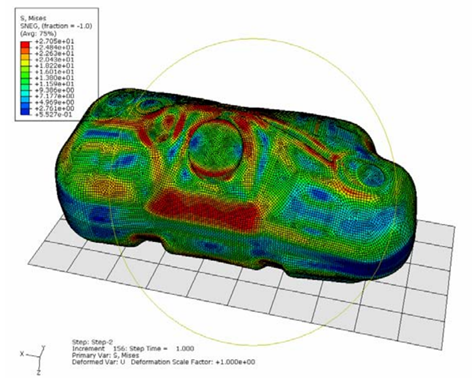通過以上的描述及案例分析可以知道,在針對汽車燃油箱的仿真中,ABAQUS軟件具有不可比 擬的優(yōu)勢及特點(diǎn),尤其是適用于塑料汽車燃油箱的仿真。而且通過采用 ABAQUS 軟件對汽車燃油 箱進(jìn)行仿真,可大大減少產(chǎn)品的試驗(yàn)次數(shù),降低產(chǎn)品的研發(fā)成本和研發(fā)周期,加快新產(chǎn)品的上市,給企業(yè)帶來效益。