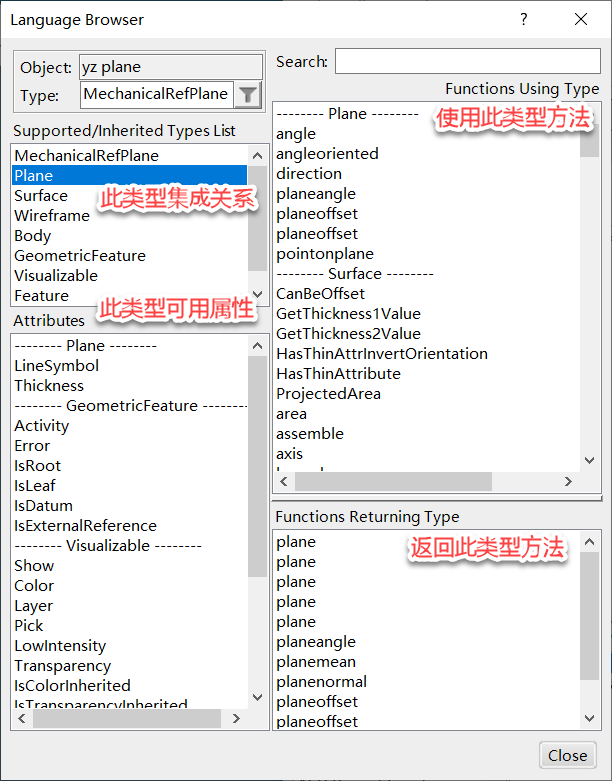 對Plane類型來說,Function可以使用Plane作為輸入條件,返回平面夾角。也可指定返回類型為Plane,查詢可用于此的Function。