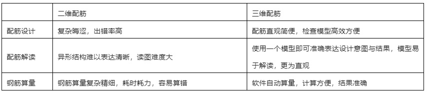 相較于傳統(tǒng)二維配筋,三維方式配筋在配筋設(shè)計(jì)、配筋解讀、鋼筋算量等方面具備以下優(yōu)勢(shì)。