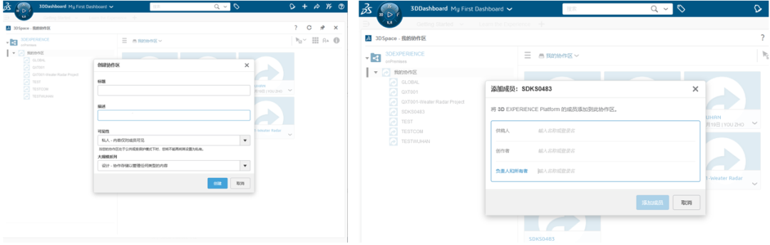 基于達(dá)索系統(tǒng)3DEXPERIENCE平臺(tái)開展水電站設(shè)計(jì),企業(yè)BIM管理員需要先規(guī)劃私有合作區(qū)保證項(xiàng)目數(shù)據(jù)獨(dú)立以及安全。項(xiàng)目合作區(qū)創(chuàng)建后,基于項(xiàng)目策劃內(nèi)容由企業(yè)BIM總監(jiān)分派任務(wù)、企業(yè)BIM技術(shù)組成員添加項(xiàng)目設(shè)計(jì)人員,同時(shí)在添加界面,分派項(xiàng)目成員角色。