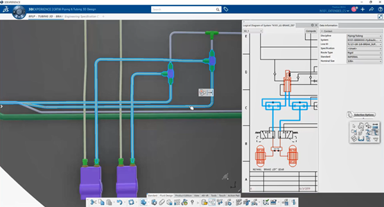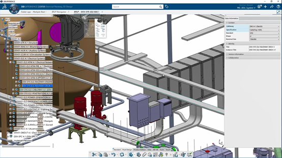 機(jī)電設(shè)計(jì)包括水力機(jī)械、電氣一次、電氣二次等內(nèi)容,在設(shè)計(jì)過(guò)程中存在因空間小易產(chǎn)生碰撞,標(biāo)準(zhǔn)件多,管線復(fù)雜等問(wèn)題, 達(dá)索系統(tǒng)3DEXPERIENCE平臺(tái)的電氣、管路設(shè)計(jì)解決方案可以完全匹配水電站機(jī)電設(shè)計(jì),通過(guò)電氣、管路自動(dòng)化設(shè)計(jì)提高設(shè)計(jì)質(zhì)量和效率,同時(shí)達(dá)索系統(tǒng)3DEXPERIENCE平臺(tái)包含大量機(jī)電標(biāo)準(zhǔn)件,可以快速實(shí)例化橋架、電纜、閥件等標(biāo)準(zhǔn)件。另外,通過(guò)Modelica和3DEXPERIENCE的Dymola能力,可以快速開發(fā)、仿真和驗(yàn)證復(fù)雜機(jī)電系統(tǒng)。