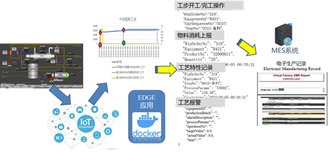 EDGE應(yīng)用通過訂閱,獲取設(shè)備閥門的開關(guān)信號,結(jié)合工藝流程將某個閥門的開或關(guān)同工單的工步開工和工步結(jié)束進行轉(zhuǎn)換,在收到閥門開的信號后,轉(zhuǎn)換為工步的開工信號,并且通往WebAPI發(fā)送給MES系統(tǒng),MES系統(tǒng)作為生產(chǎn)工單的工藝信息進行記錄,同時DEGE應(yīng)用可以通過接口查詢閥門開和關(guān)的時間,以及在閥門開和關(guān)的時間點反應(yīng)釜的稱重值,將關(guān)時間的重量減去開時間的重量可以獲得投料量。作為物料消耗可以上報給MES系統(tǒng)。在閥門關(guān)的時刻還可以看此時反應(yīng)釜的溫度,作為設(shè)備的溫度特性進行上報。