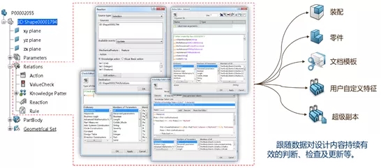 企業(yè)可以通過CATIA知識工程模塊,梳理產(chǎn)品設(shè)計過程中類似結(jié)構(gòu),通過參數(shù)化建模、規(guī)則控制、自動化結(jié)構(gòu)調(diào)整等技術(shù)將此類結(jié)構(gòu)以超級副本(PowerCopy)、用戶自定義特征(UDF)、工程模板等形式進(jìn)行打包或封裝,最終通過結(jié)構(gòu)特征庫進(jìn)行分類管理。