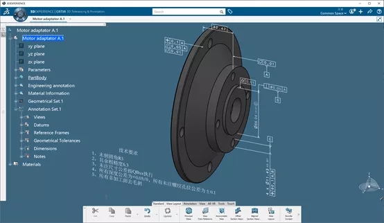 M3D(3DMaster Designer)是3DExperience平臺提供的三維標注模塊。該模塊可實現(xiàn)一個完整的基于模型的定義,消除了傳統(tǒng)2D圖紙帶來的設(shè)計更新產(chǎn)生的重復(fù)工作,同時仍然支持基于三維標注生成2D圖紙來進行交流。通過國際3D數(shù)據(jù)交換標準格式,如STEP,可保留模型規(guī)格、公差和注釋等,從而為下游傳遞相應(yīng)信息。
